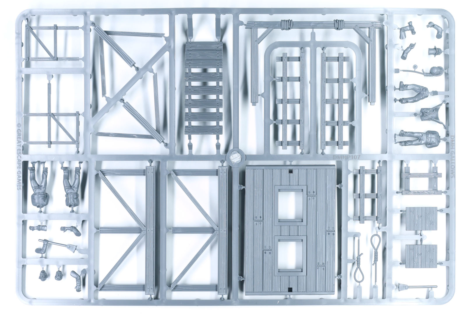 Das Gallows Set enthält den Galgen selbst sowie vier Miniaturen im Maßstab 28 mm, die alle auf einem einzigen großen Gussrahmen befestigt sind. Der empfohlene Verkaufspreis liegt bei 20 GBP und es wird ab dem 10. Oktober erhältlich sein.