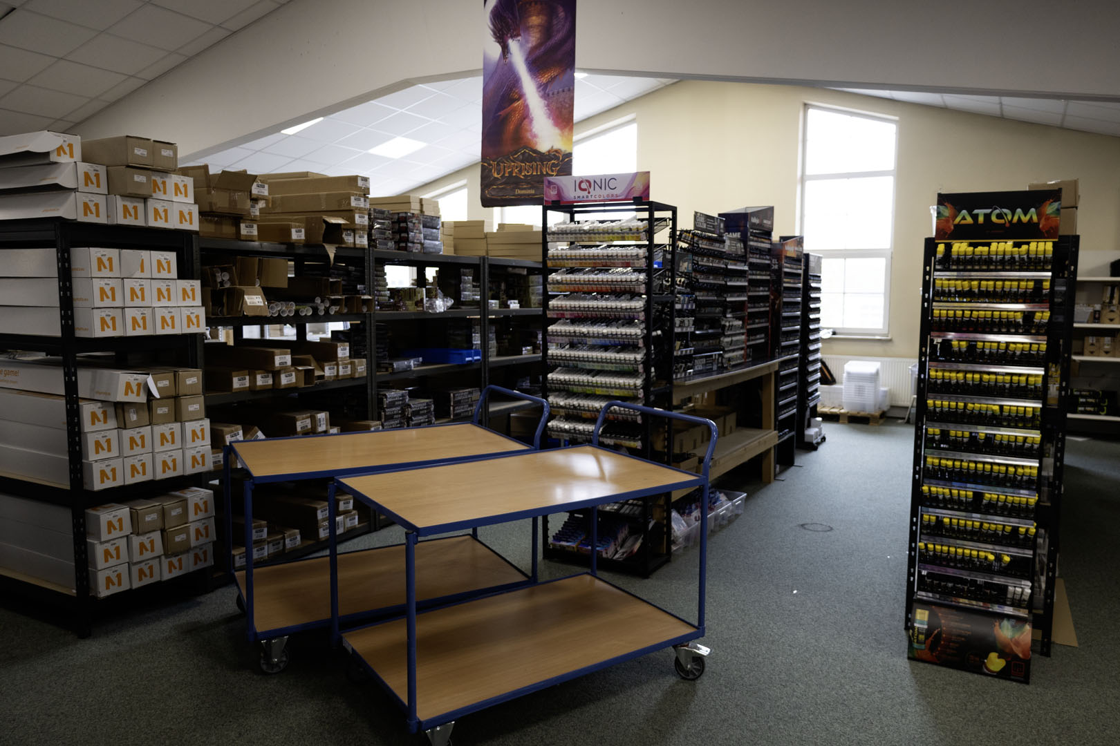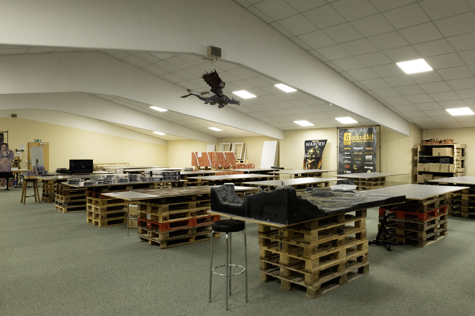 Großweil liegt etwa eine Stunde südlich von München in der Nähe von Murnau am Staffelsee. Dort ist Radaddel in das geräumige Obergeschoss eines Holzfachhandels gezogen. Neben viel Platz für das Ladenlokal gibt es dort auch ein großzügiges Angebot an Spieltischen. Diese sind häufig im Einsatz, wie dem Instagram-Kanal zu entnehmen ist. Radaddel sind Partner u.a. des STC Oberland, Würfel-Rüpeln und Level Zero Heroes die ihre verschiedenen Events dort durchführen. Ende November findet auch ein Bolt Action Turnier statt.