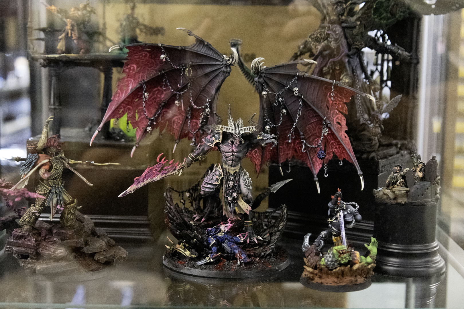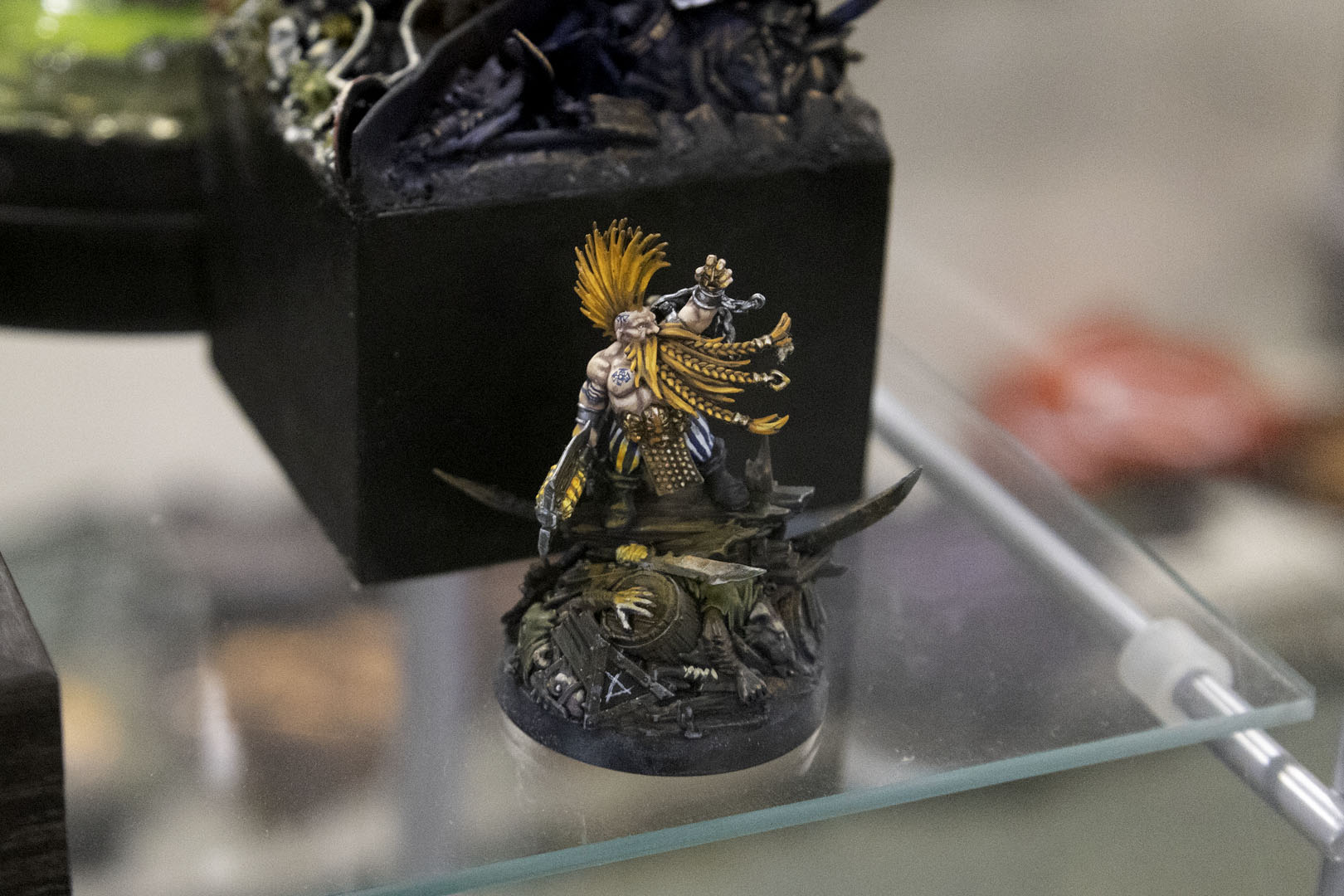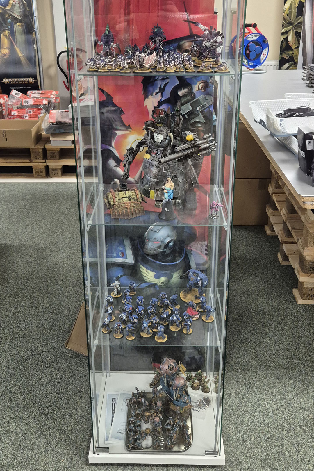Und natürlich gehören zu einem Ladenlokal auch bemalte Modelle. Deshalb gibt es hier einige Vitrinen mit tollen Exponaten aus verschiedenen Spielsystemen zu bestaunen.