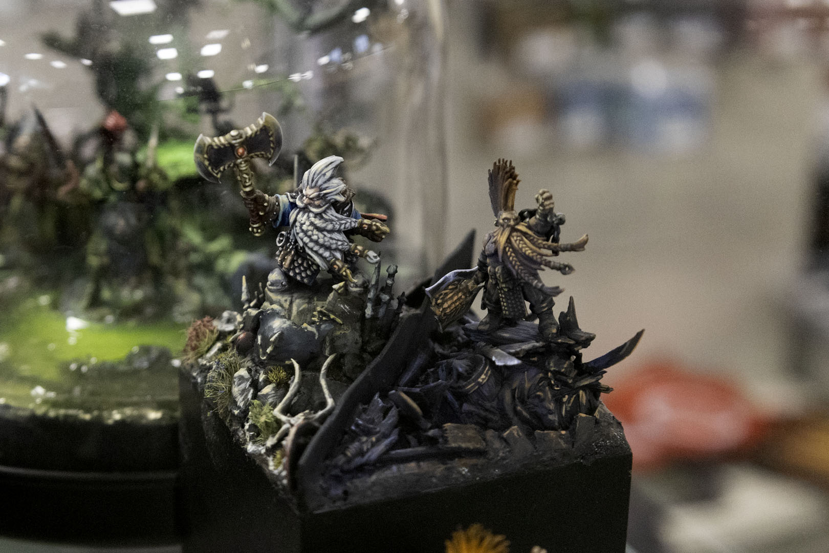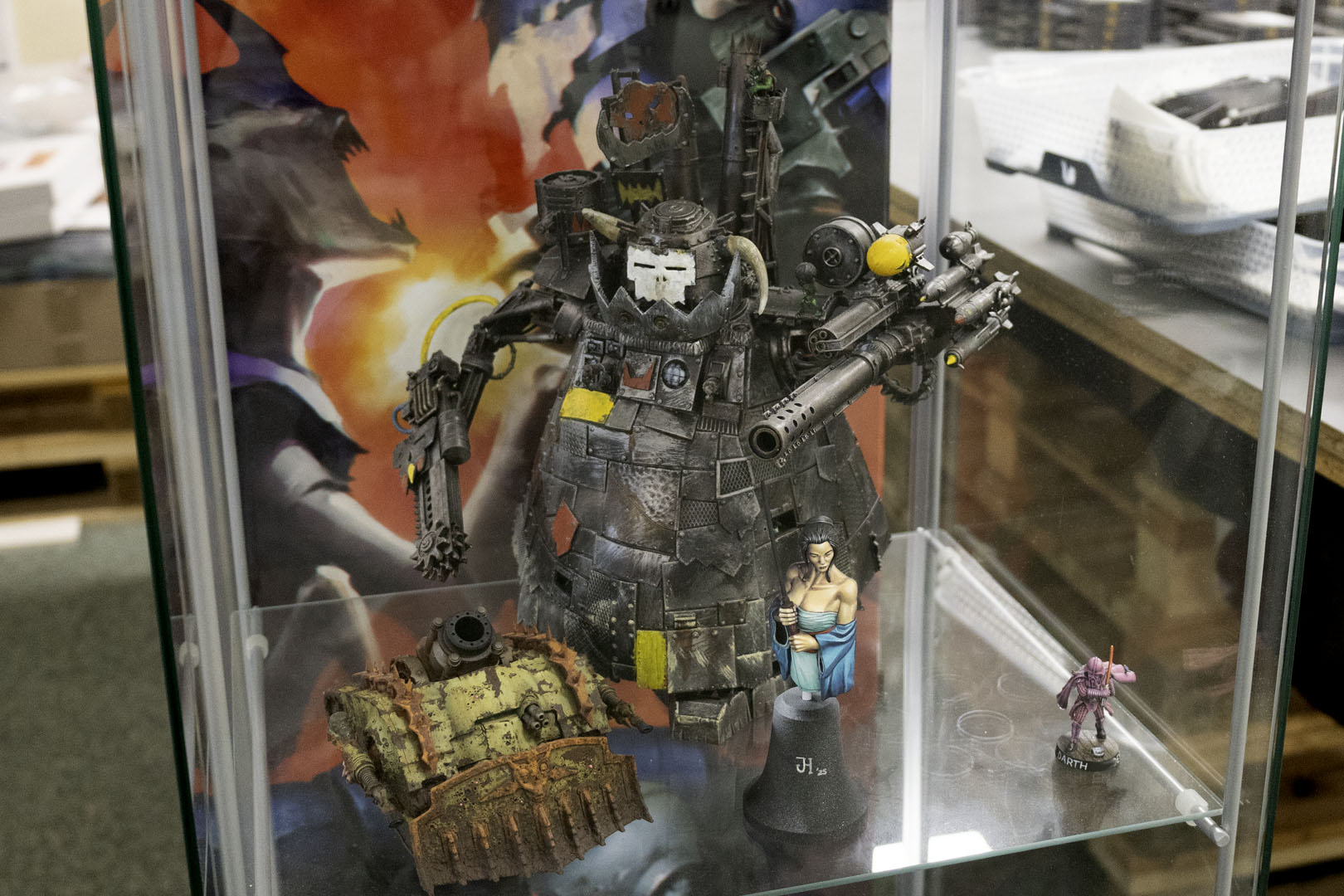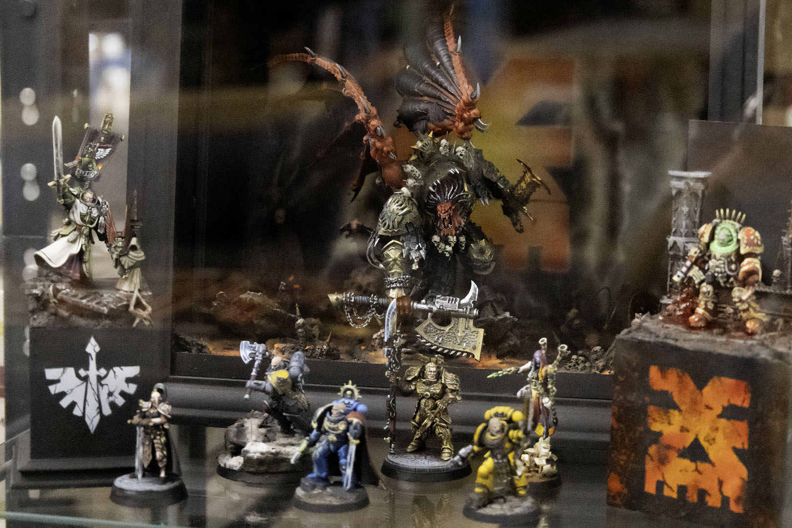 Und natürlich gehören zu einem Ladenlokal auch bemalte Modelle. Deshalb gibt es hier einige Vitrinen mit tollen Exponaten aus verschiedenen Spielsystemen zu bestaunen.