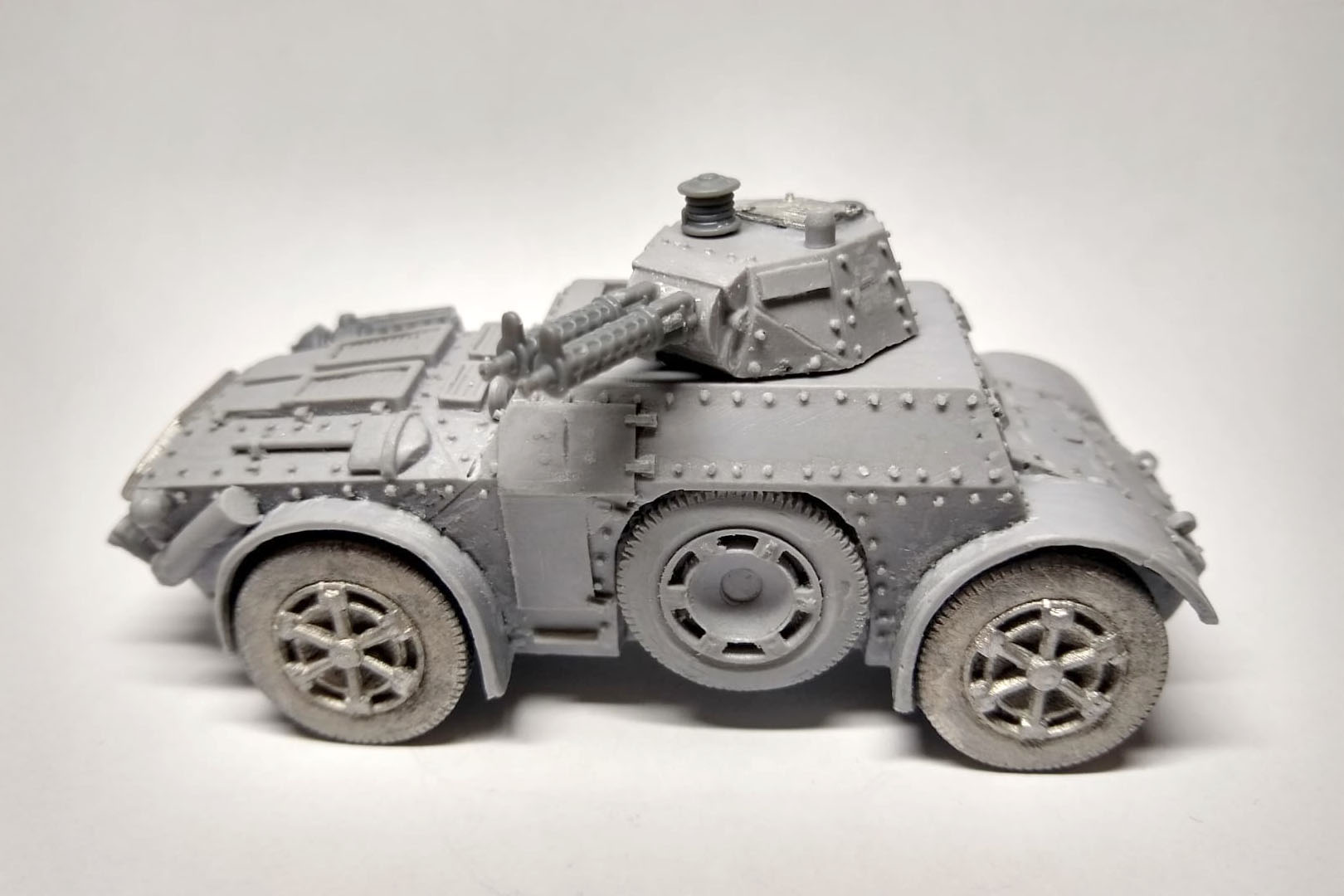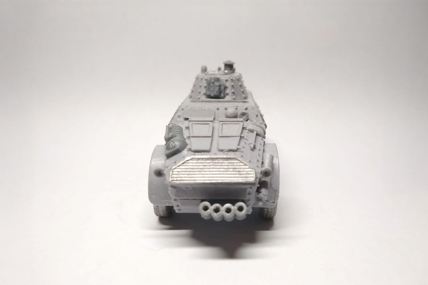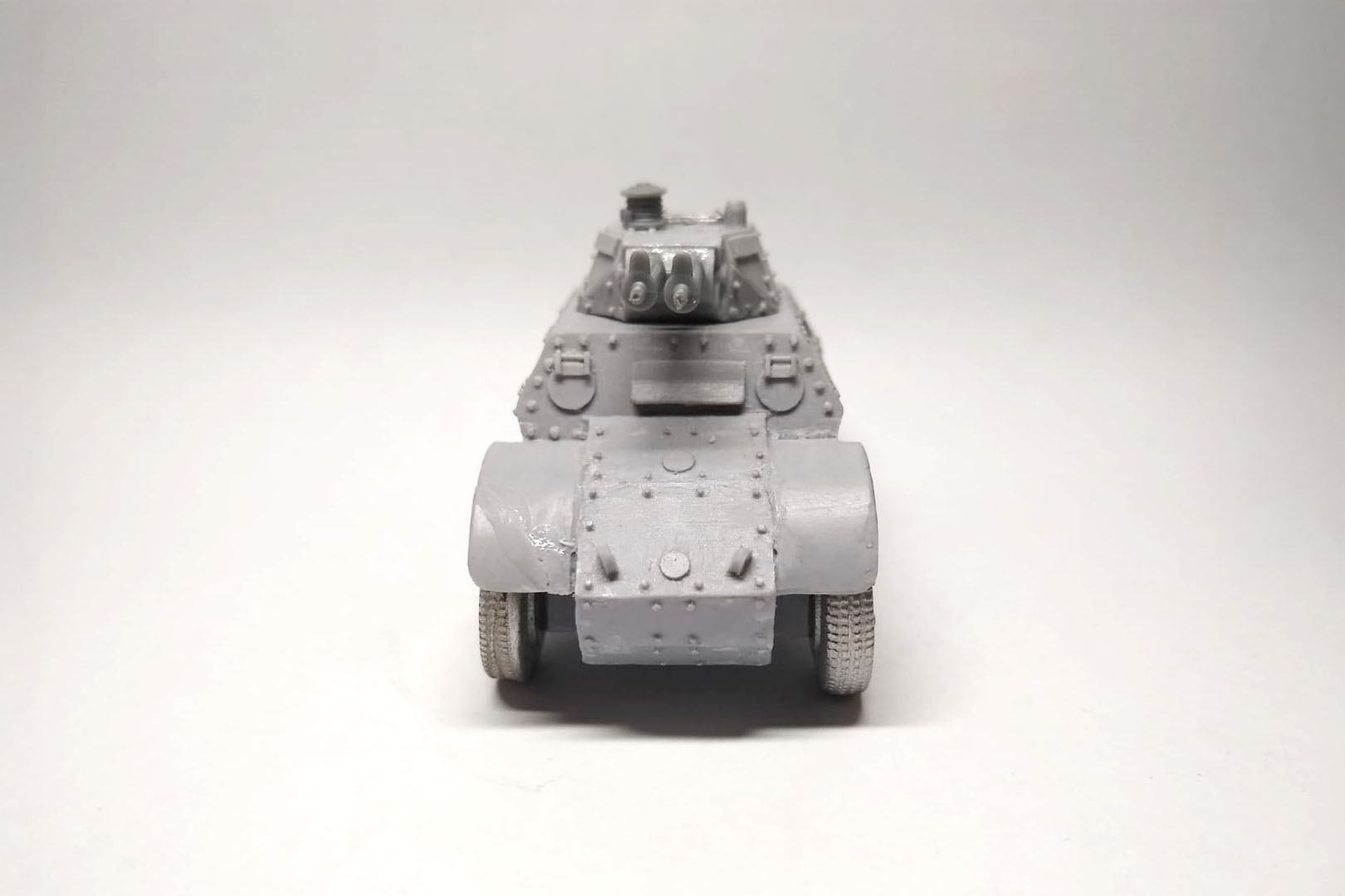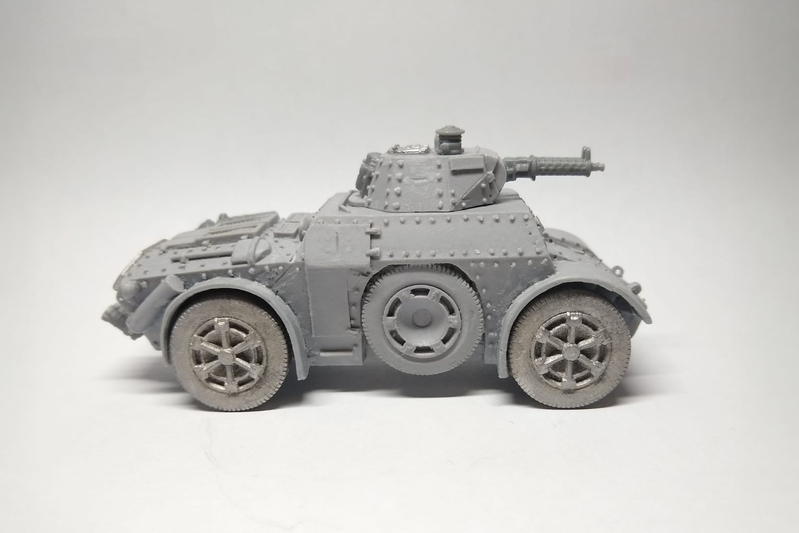 Zum Beispiel habe ich mal diese italienische Autoblinda auf der Ad Arma Con für einen Zehner abstauben können. Ursprünglich wollte ich daraus nur Scatteglände bauen und ich musste ein paar Macken reparieren, wie diesen abgebrochenen Kotflügel, aber jetzt soll der Wagen die Stelle des Humvee in der Armee einnehmen.