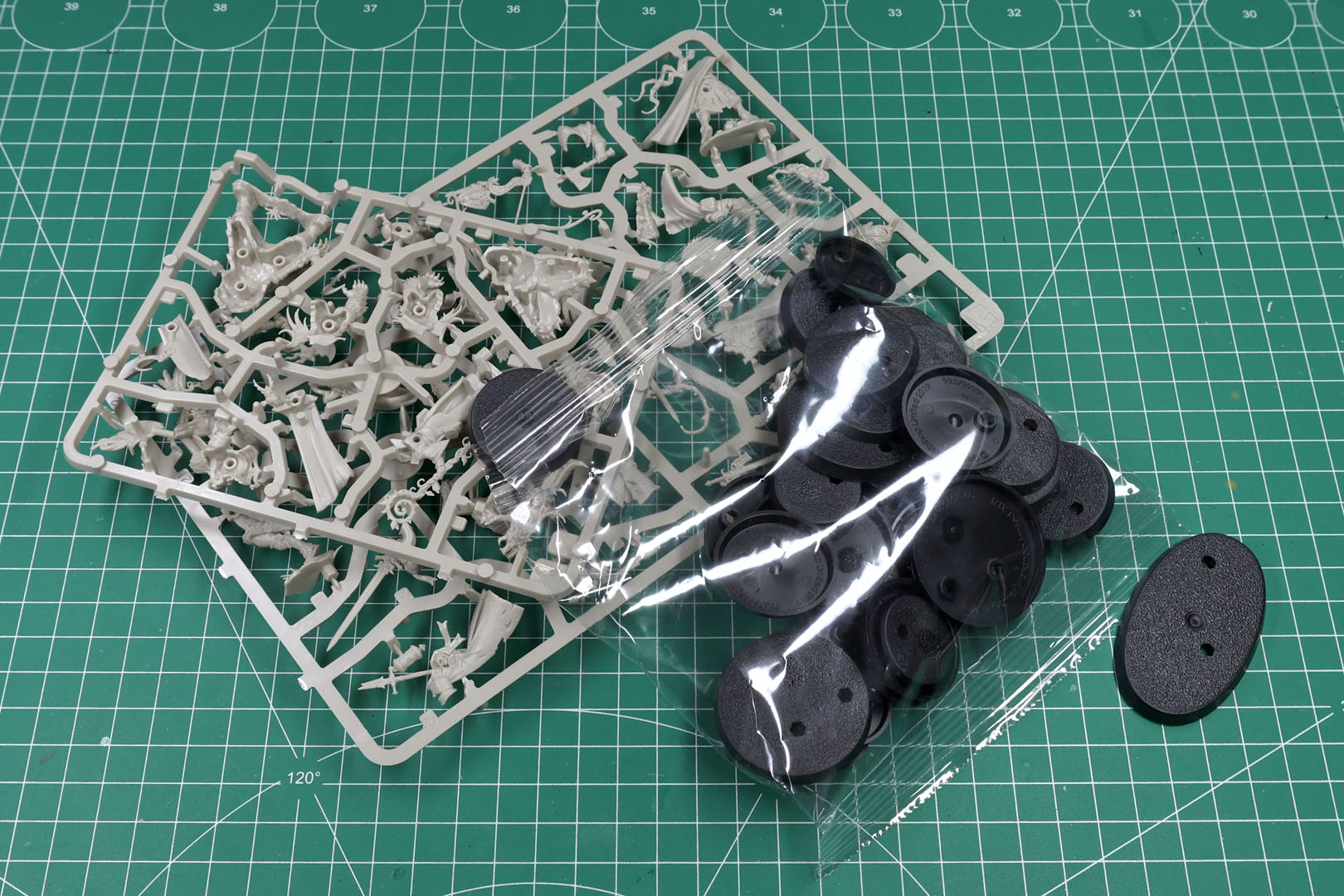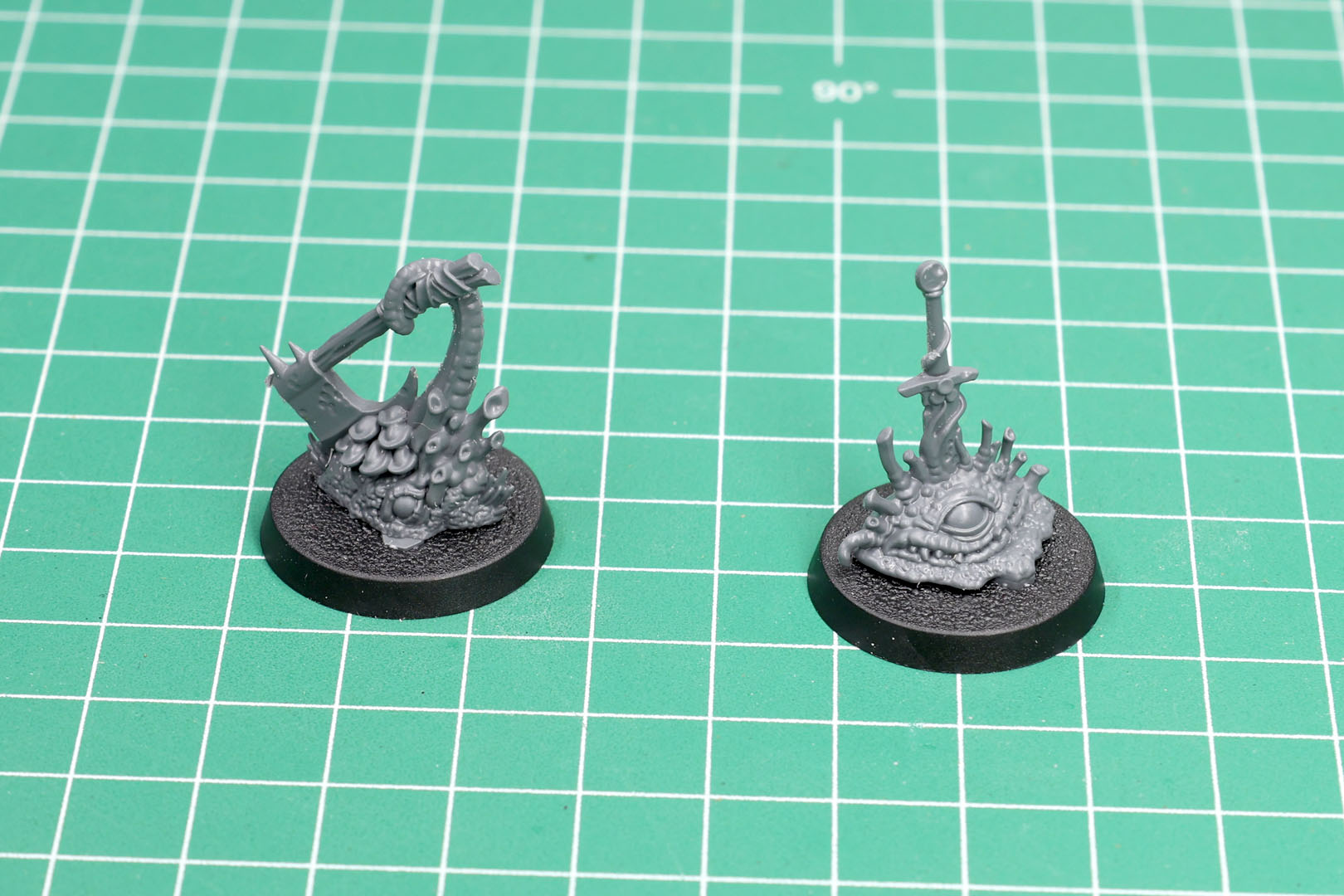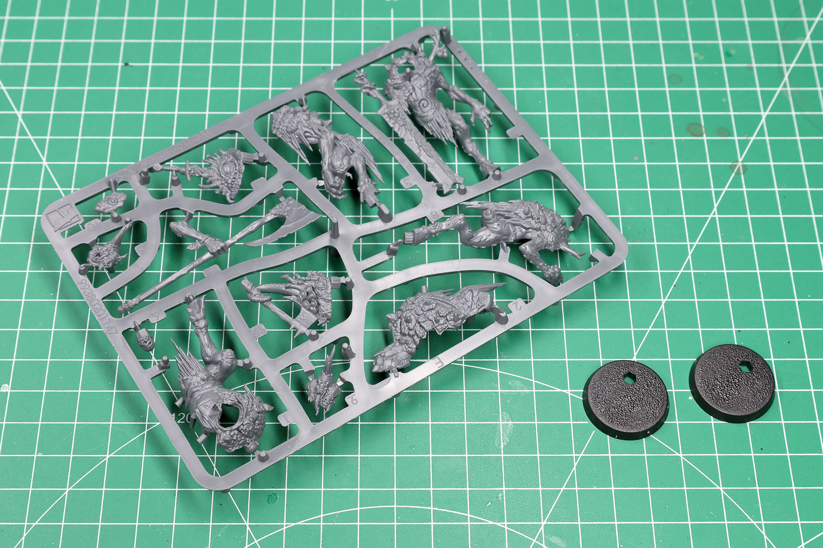 Da ich mich nicht auf einen einzigen Helden beschränken wollte, habe ich mir auch die verschiedenen Gussrahmen mit den Mobs angesehen. Ich habe kurz über die untoten Pferde nachgedacht, mich aber schließlich für die Marker im Nurgle-Thema entschieden, die mir besonders gefallen haben.