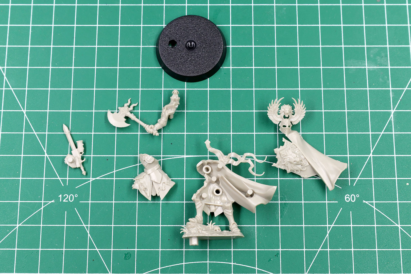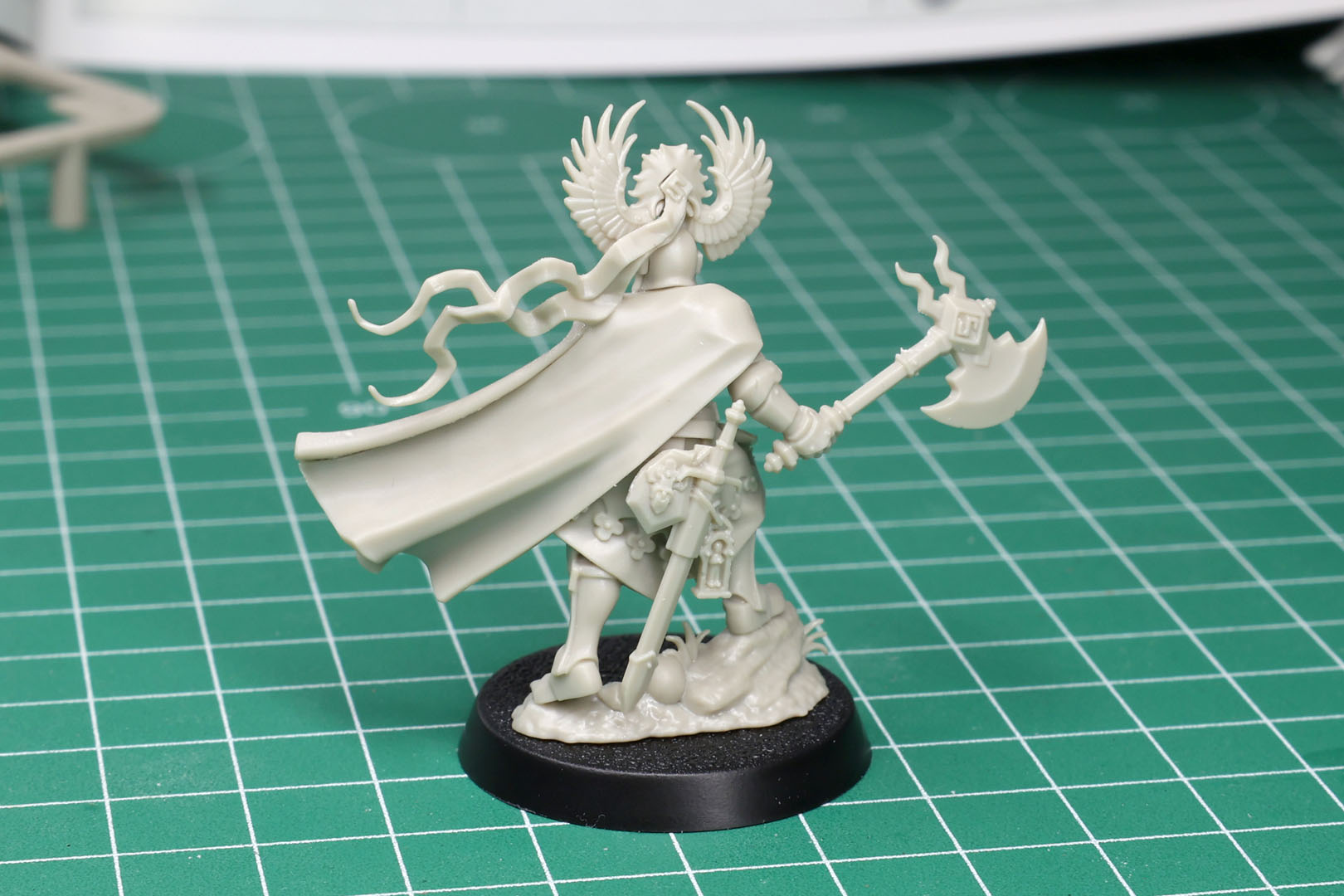 Ich bin von der Aufteilung dieses Modells nicht begeistert. Der Zusammenbau des Umhangs ist zwar clever gelöst, denn die Verbindungsstelle ist in einer Falte versteckt, sodass sie kaum sichtbar und leicht zu kaschieren ist. Der Schild ist jedoch als Teil des Körpers gestaltet und sitzt dicht daran, was das Erreichen bestimmter Bereiche beim Bemalen unnötig erschwert.