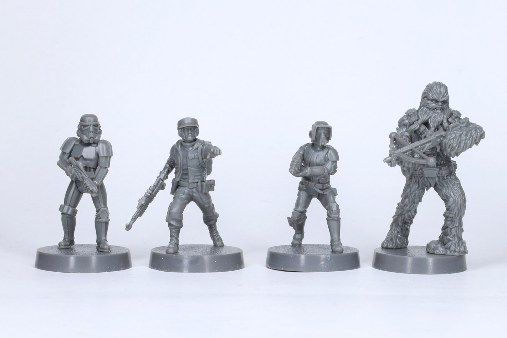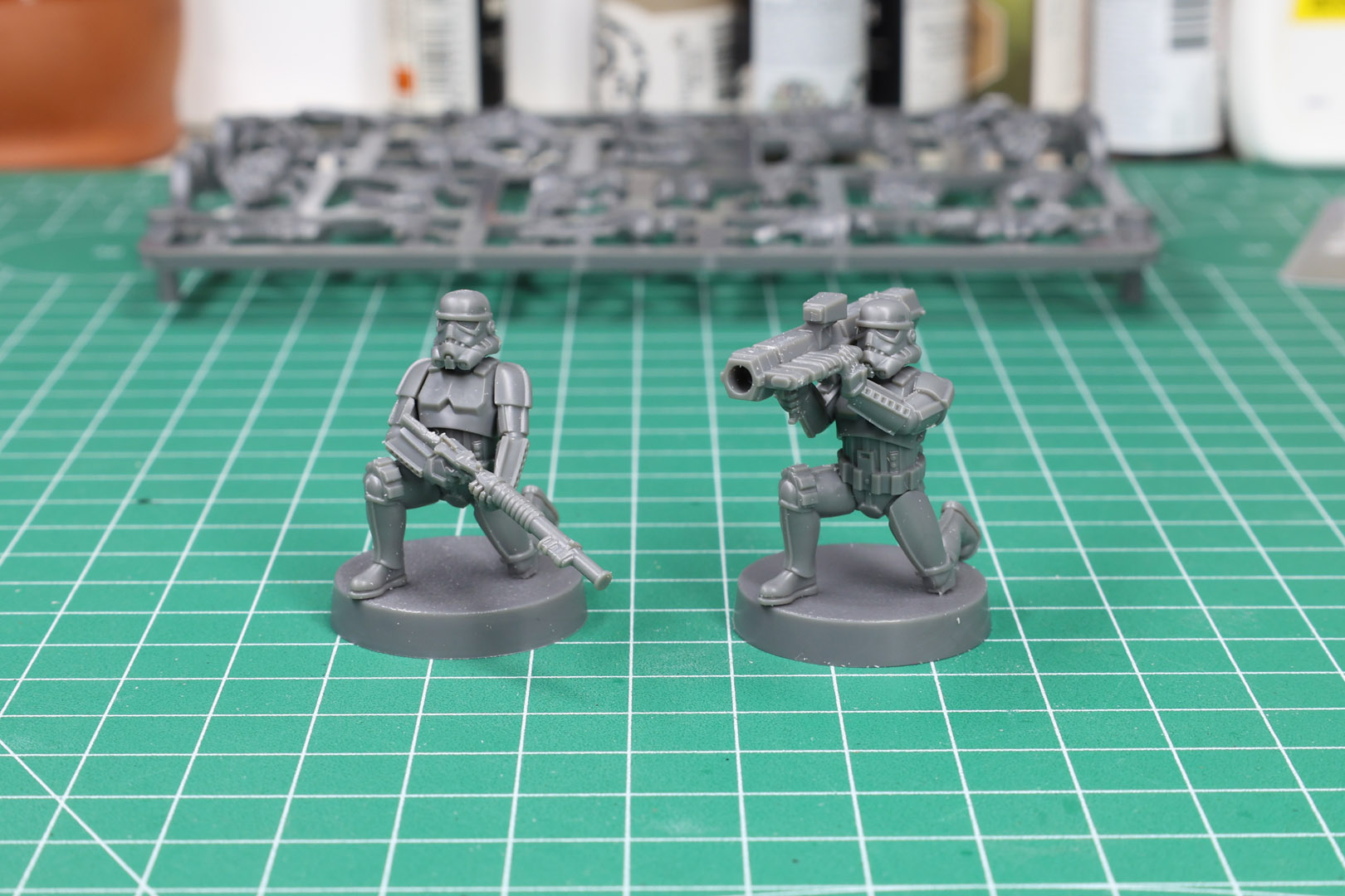 Die aktualisierten Modelle sind auf zwei verschiedene Gussrahmen verteilt. Gussrahmen 1 enthält die Teile für den Squad Leader sowie die beiden Waffen-Upgrades: den T-21 Heavy Blaster und den HH-12 Rocket Launcher. Gussrahmen 2 enthält vier verschiedene Modelle von regulären Stormtroopers mit E-11 Medium Blastern und ist zweimal pro Box enthalten.