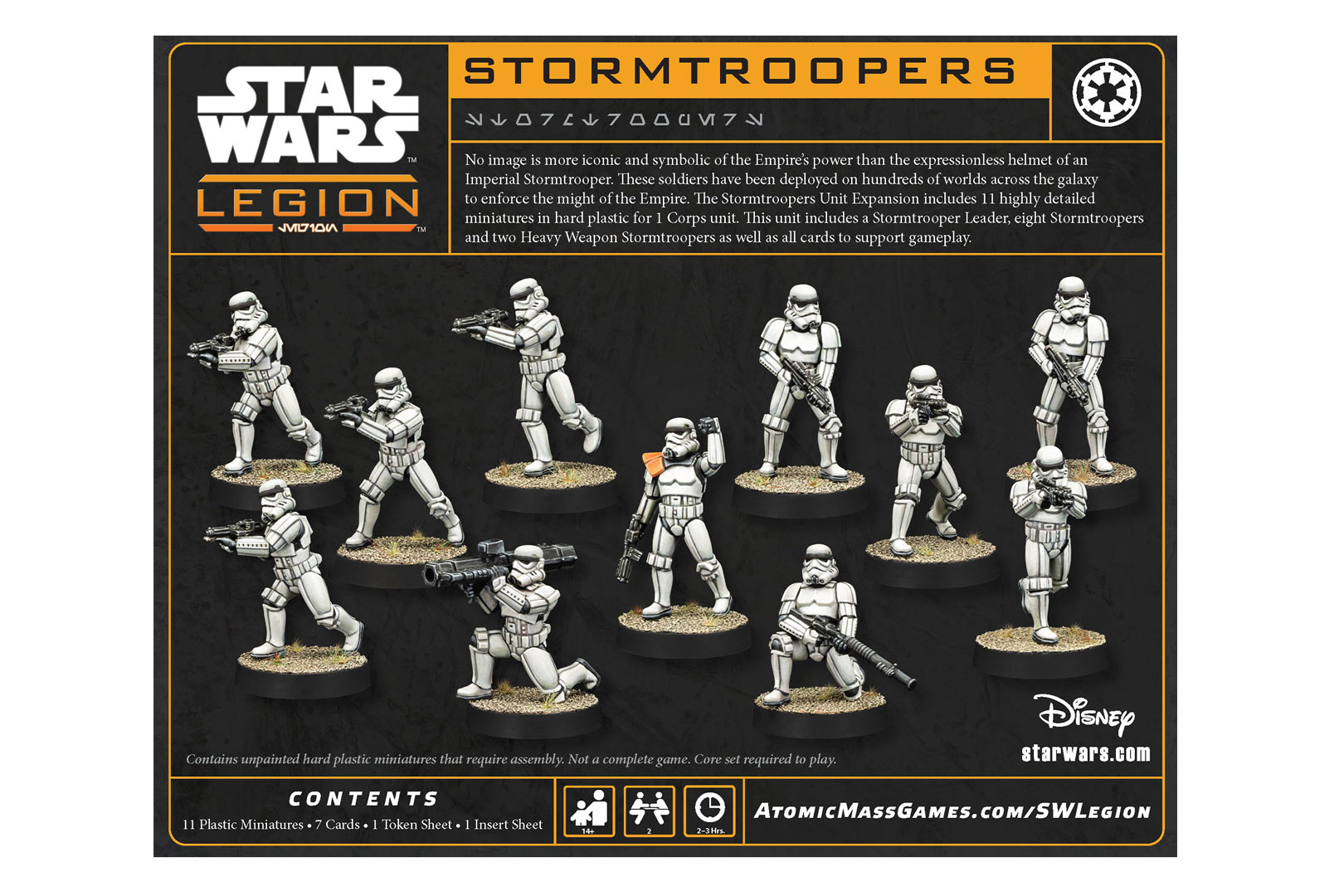 Dieses neue Set ersetzt das alte SWL07 Stormtrooper-Set und erhöht die Anzahl der Miniaturen pro Set von sieben auf elf. Die alten Modelle werden zwar als Plastikminiaturen beschrieben, sind aber eigentlich aus Restic, einer Art Spin-Cast-Kunststoff, während die neuen Modelle aus spritzgegossenem Hartplastik sind. Das neue Stormtrooper-Set kostet 54,99 USD.