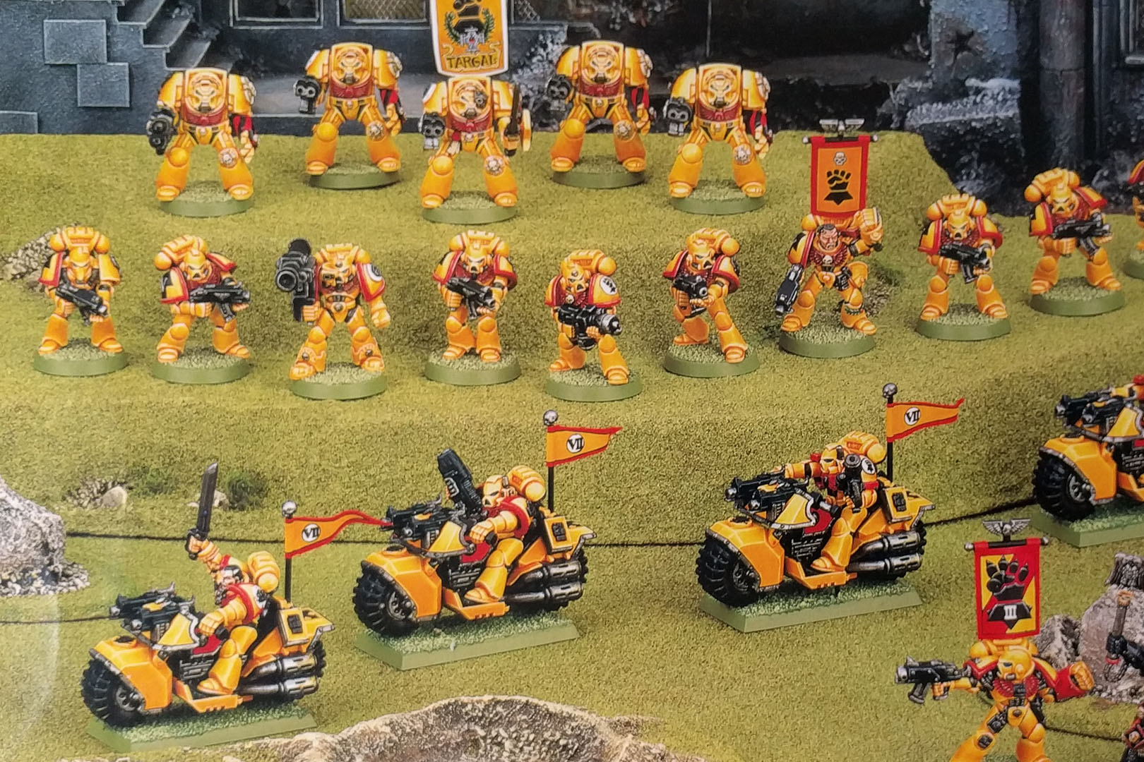 Es gibt noch weitere tolle Ressourcen im Internet, zum Beispiel MiniScape / MneilPainter, der ebenfalls eine Imperial-Fists-Armee bemalt hat und dabei mit etwas einfacheren Techniken einen zugänglichen Ansatz verfolgt hat.