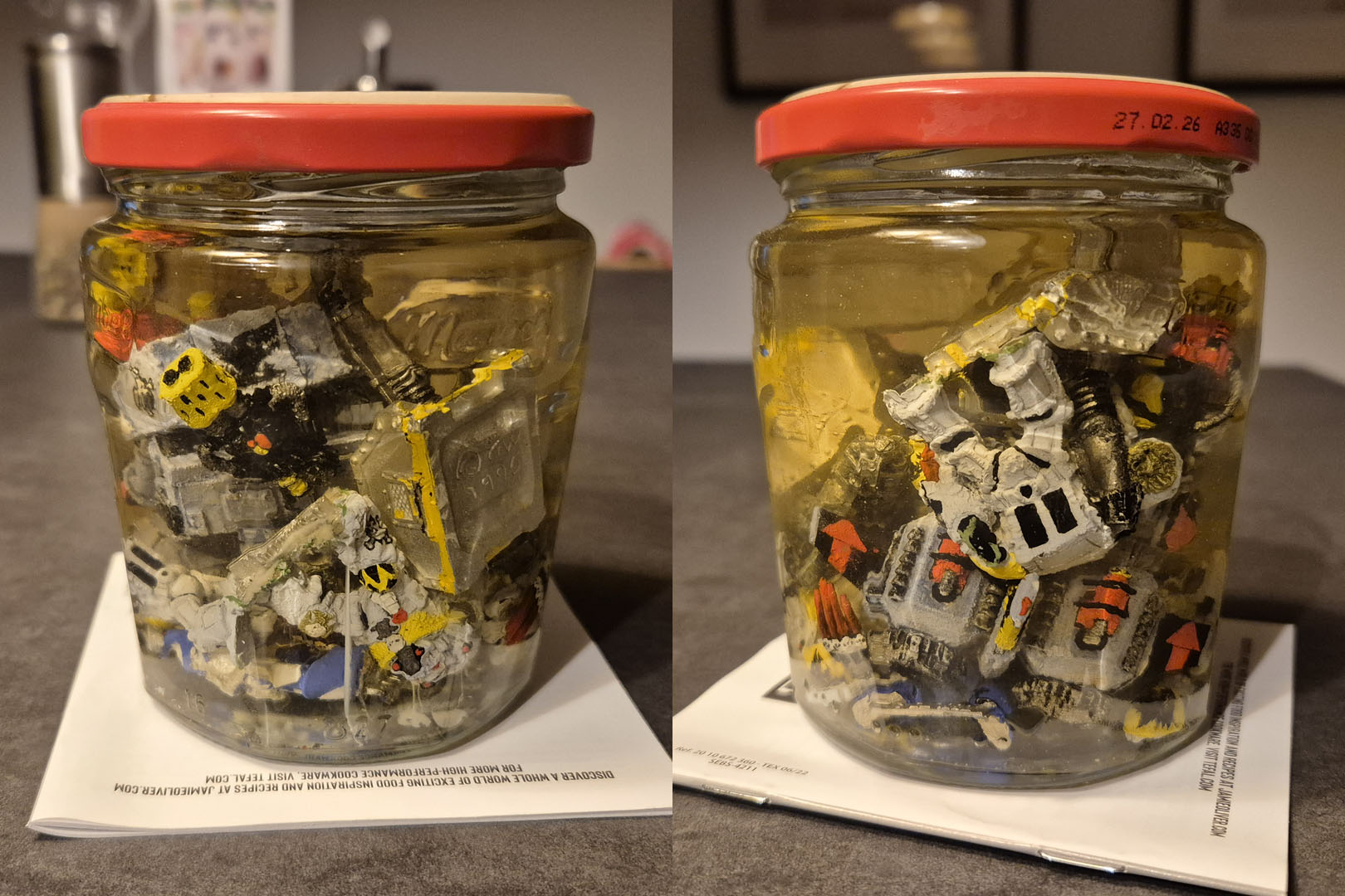 Ich habe ein paar Terminatoren, Fahrzeugteile und Figuren entfärbt, um eine gute Ausgangsbasis zu haben. Vor allem, weil ich sichergehen will, dass ich alle Gussgrate und Angussstellen von den Miniaturen entfernt habe. Je besser die Vorbereitung, desto weniger Aufwand beim Bemalen und desto besser das Endergebnis.