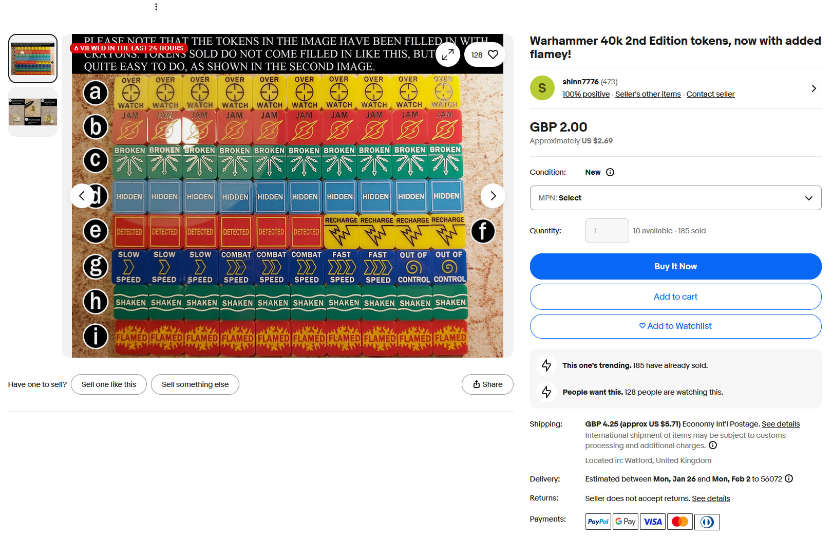 Ja, ich hätte auf Yaktribe gehen, die Bögen der Necromunda-Spielmarker runterladen, sie ausdrucken, laminieren und ein paar dünne Marker aus dickem Papier oder Karton basteln können. Aber es gibt noch andere Möglichkeiten! Ich bin auf dieses Angebot von shinn7776 bei eBay gestoßen, bei dem es um Acryl-Spielmarken geht.