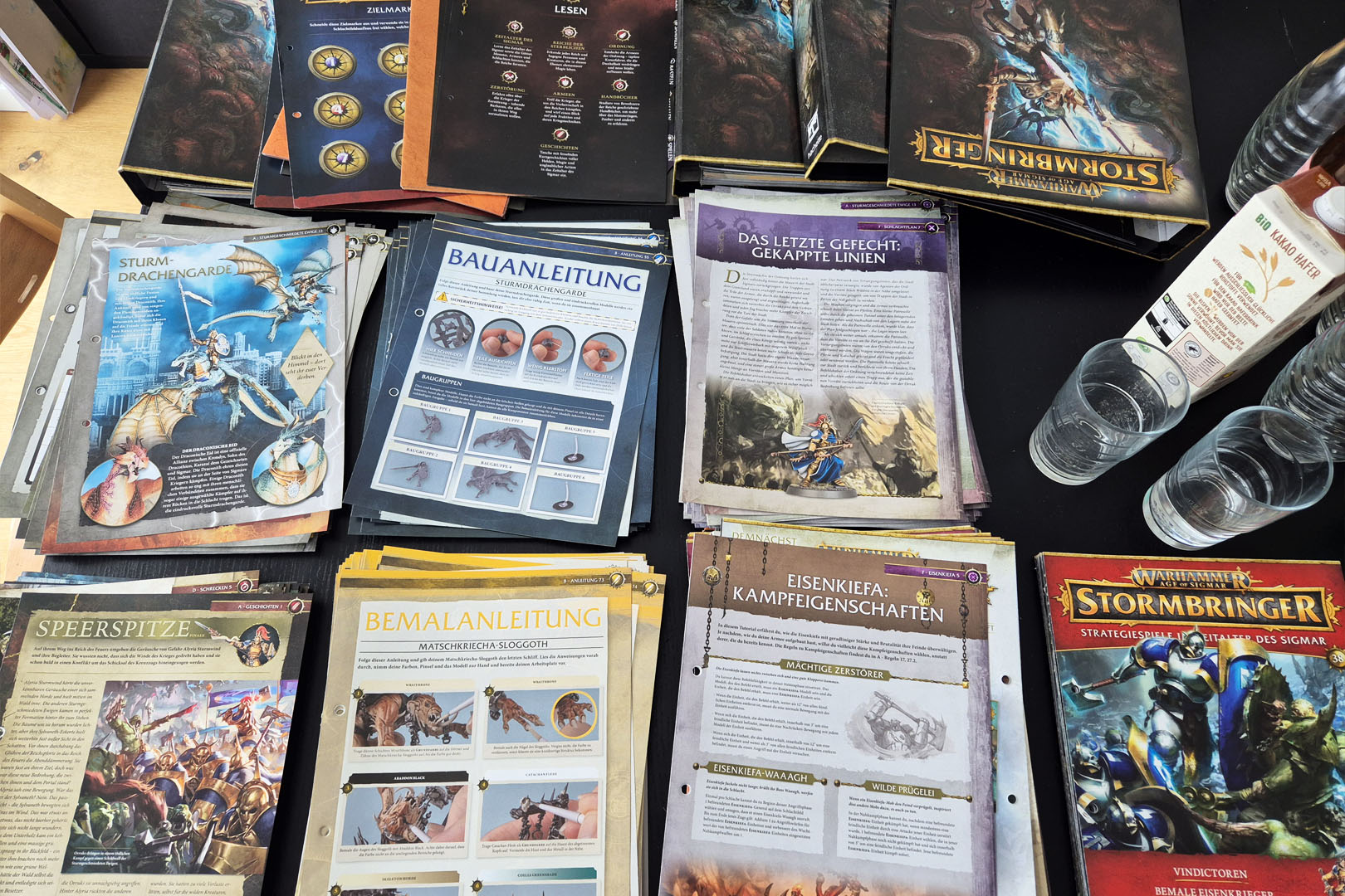 Ich hatte zu Beginn des Monats noch ein paar Tage frei und nutzte diese Zeit, um einige längst überfällige Aufräumarbeiten in Angriff zu nehmen. Unter anderem habe ich die Stapel des Stormbringer-Magazins durchgesehen und beschlossen, dass es keinen Grund gibt, die Bau- und Bemalanleitungen aufzubewahren, da sie nicht nur online verfügbar sind, sondern auch im Vergleich zu den Optionen auf den Gussrahmen und den vollständigen Farbsortimenten reduziert sind. Was ich behalten habe, waren die Teile mit Geschichten und Bonusinhalten, wie die Hintergründe und zusätzlichen Hintergrundartikel, die für die Inspiration am Arbeitstisch viel nützlicher sind.