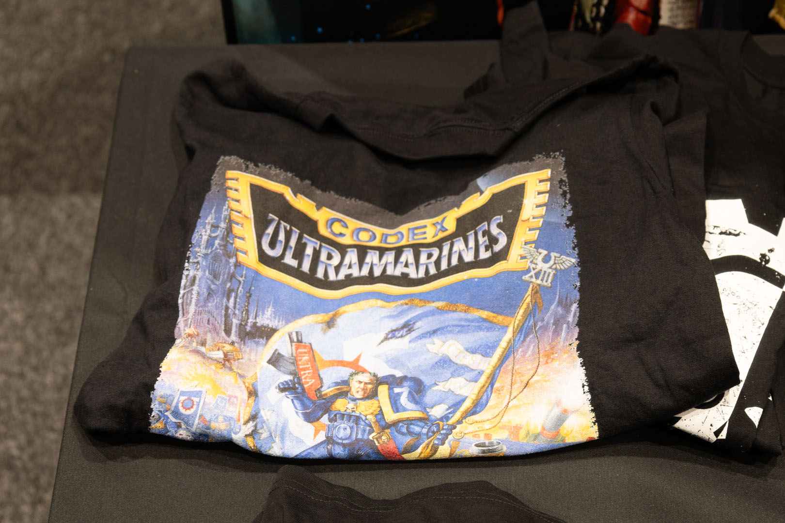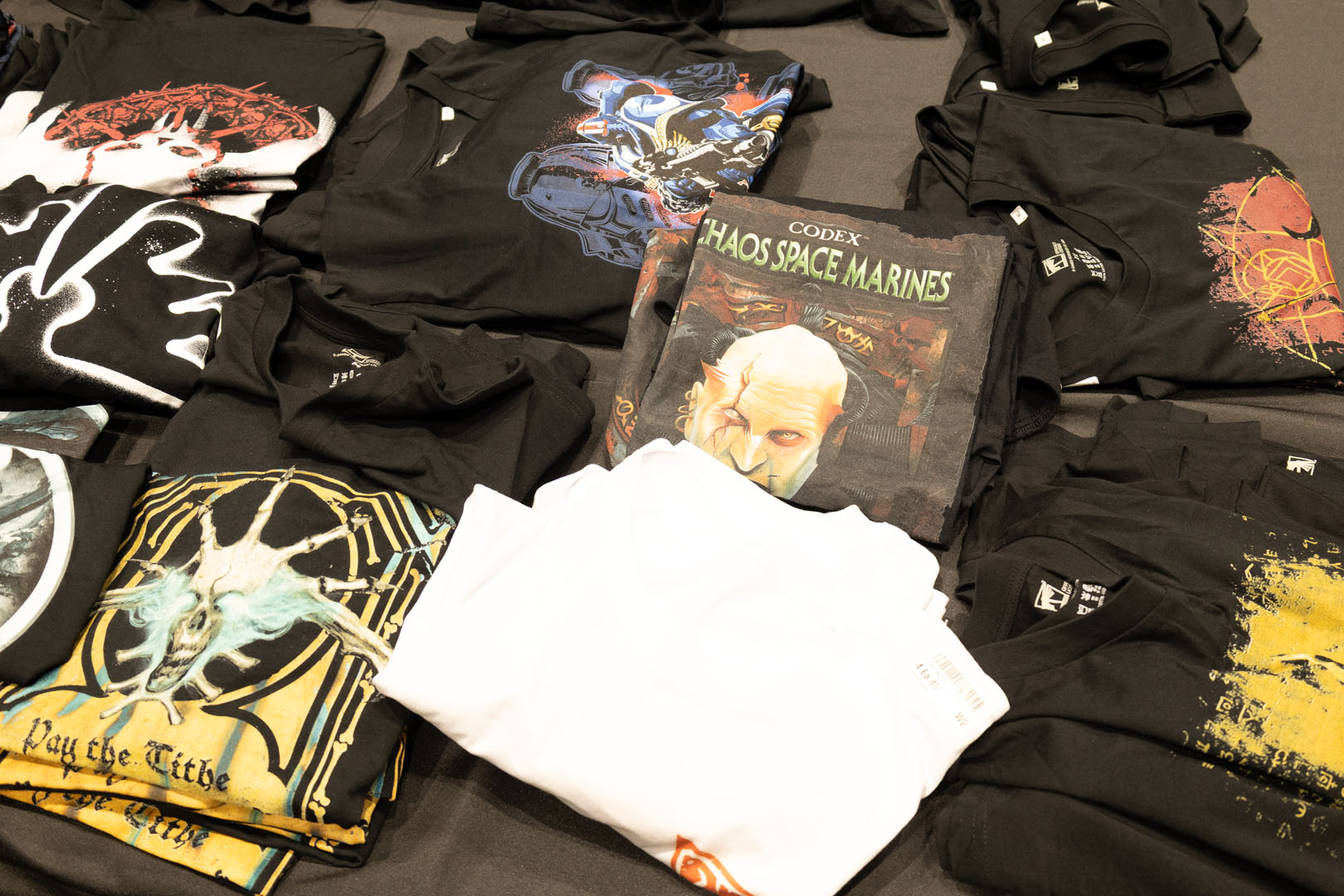 Auf der anderen Seite des Eingangs war der offizielle Store untergebracht. Dort gab es eventexklusive Artikel, Forge-World-Kits und eine breite Auswahl an Merchandise, inklusive dieser Retro-T-Shirts, bei denen ich einfach nicht Nein sagen konnte.