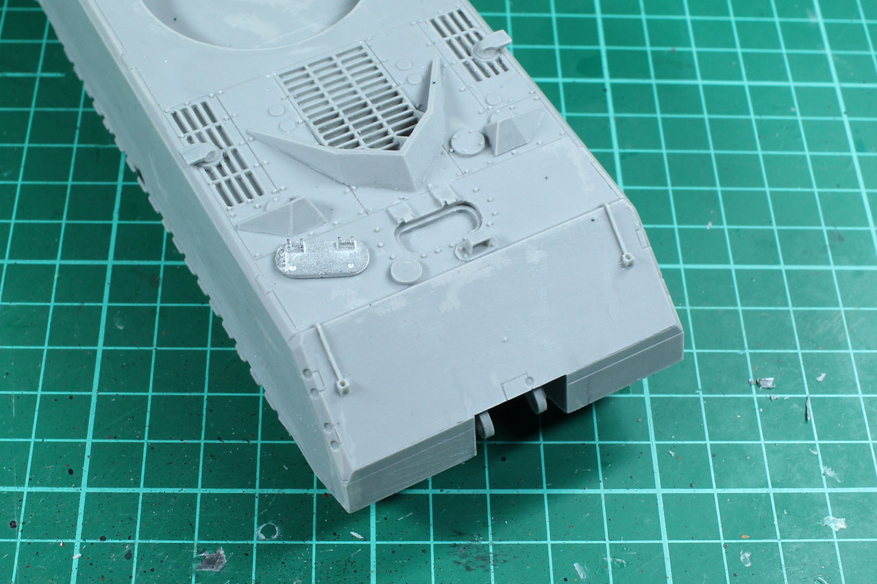 Casting is pretty good, the only visible mold lines are on the underside of the tracks and the turret. The resin has black spots in it, but these only seem to be colour distortions, as the surface is smooth and without irritation. The master for this kit wasn't 3D printed but hand build from the look of it.