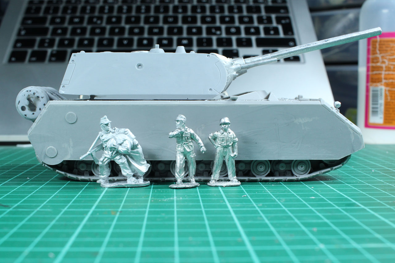 Such a huge beasts does catch attention, so the Wochenschau had to come by and take a few shots of the glorious Wunderwaffe. In the middle you can see it along with tank crew by Warlord Games and Perry Miniatures. In the third, to give you a sensation of scale, the turret is almost as large as the Panzer II.