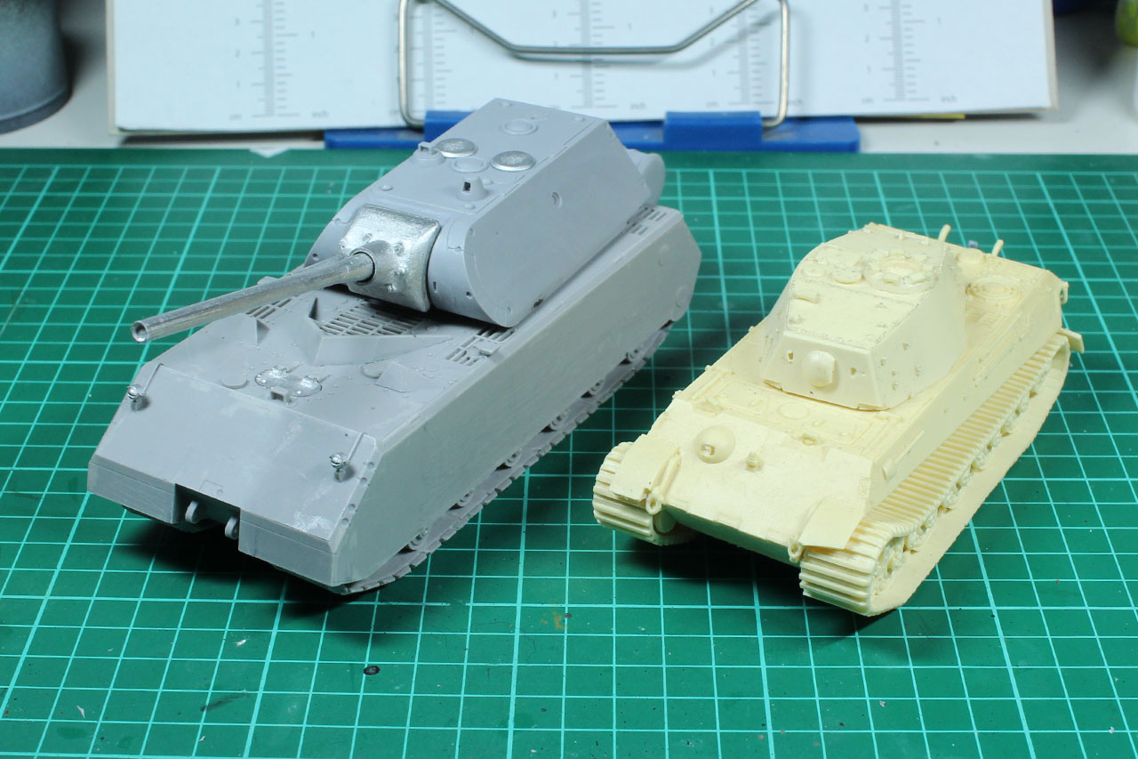 Next up in comparison with the Maus, a Tiger II chassis by JTFM / Die Waffenkammer, a Tiger I and Panzer III by Rubicon Models.