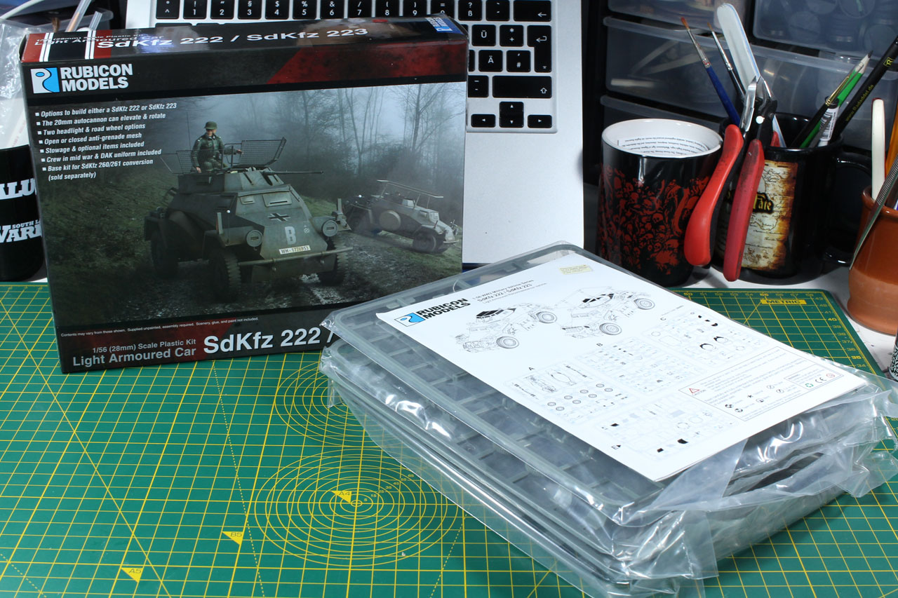 As for the Afrikakorps, there were a couple of smaller and lighter vehicles on my wishlist. I was really looking forward to the SdKfz 222 since last year, and it is out of stock in Germany for ages. But I managed to buy one. Quick build, a bit fiddly for a wargaming kit. Quite a lot of bits over after you build it, I'll tell further below why.