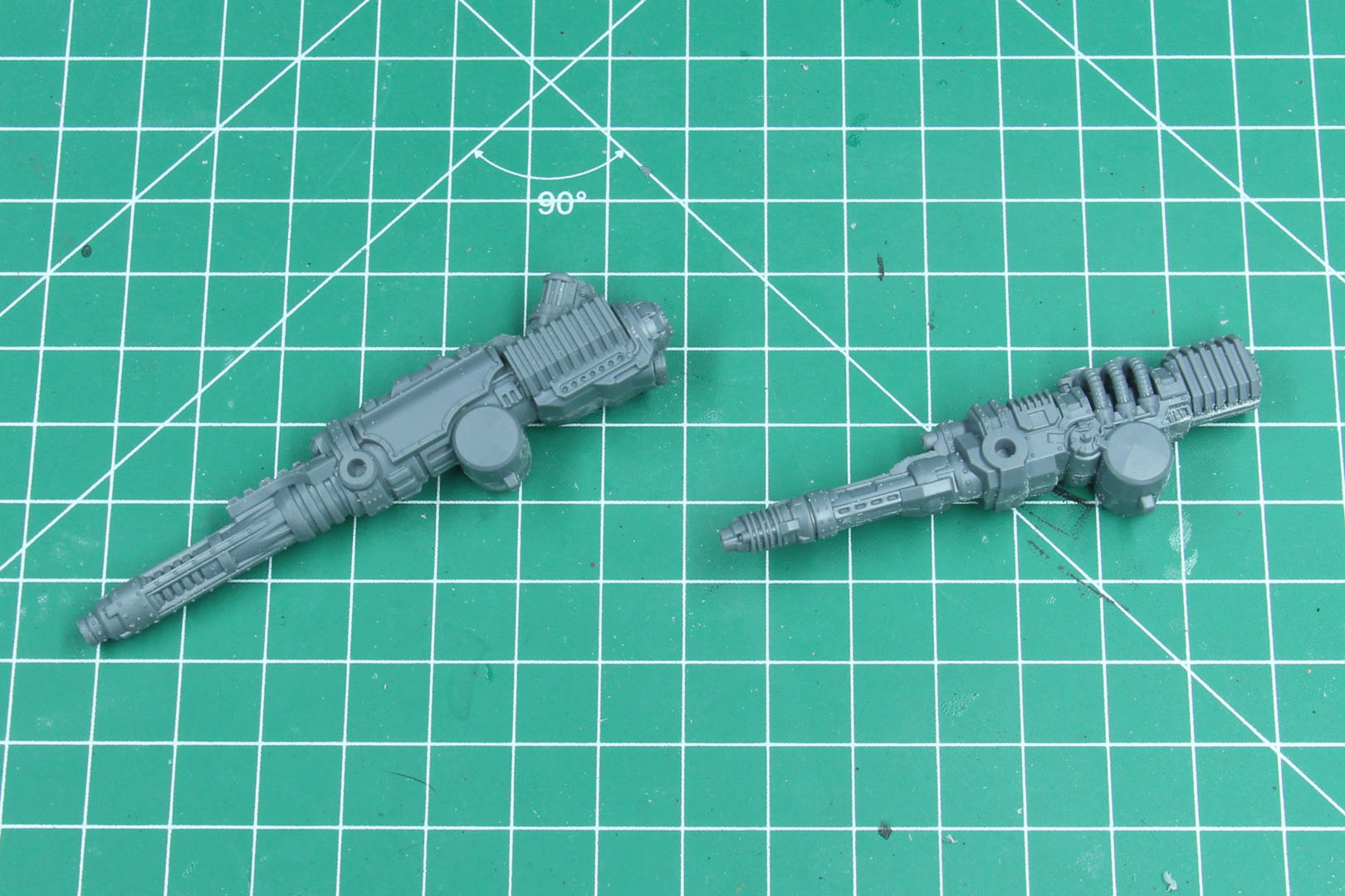 This new plastic kit, is available as a double pack from Games Workshop at 62,50 EUR, which makes them a bit cheaper than the resin variant which were 44 EURs each. On top of that, the weapons not only cover the Neutron-Laser and Volcano Cannon, but received a third option, the Conversion Beam Dissipator.