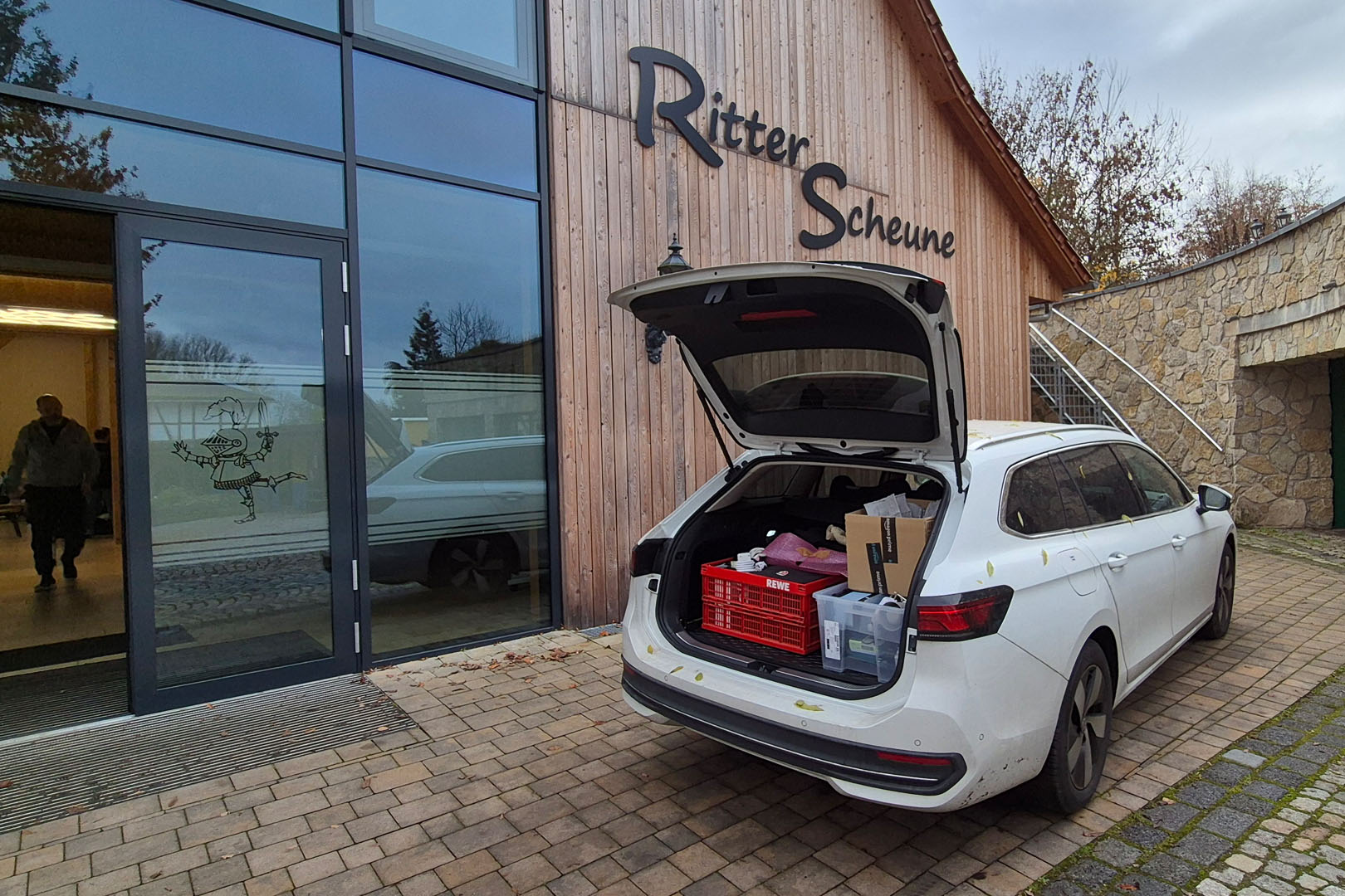 As I was very busy last week, I started packing early. In addition to my painting supplies, I also brought something for the open bar. In addition to the full board provided by the youth hostel (including a fridge stocked with delicious Vita-Cola), many participants bring snacks or drinks from home, some of which are home-brewed. On the way there, I stopped at Haribo and picked up one of the large mixed kilo boxes. Later, numerous other sweets and snacks were added.