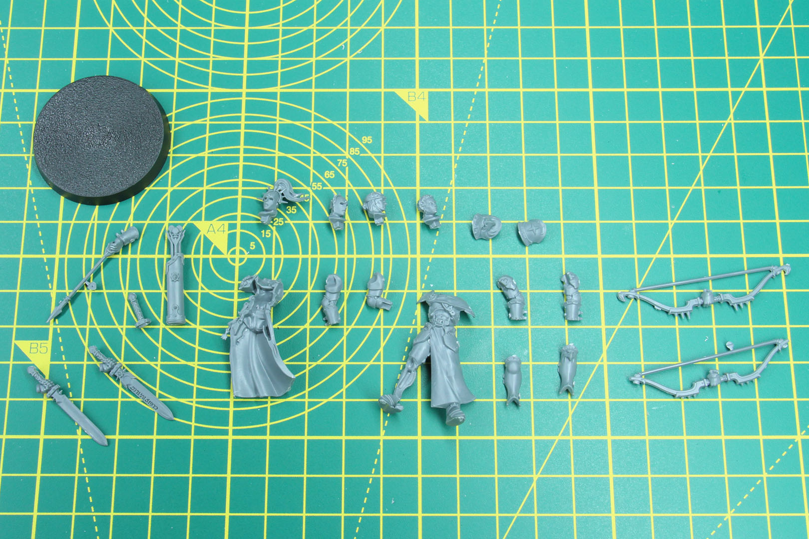 The second pose, a female Vigilor, has the same options. There are four different heads, two bare and two helmeted, including a variant for the Alpha. The same goes for the weapons, which come in a regular version and a more decorative version for the Alpha.