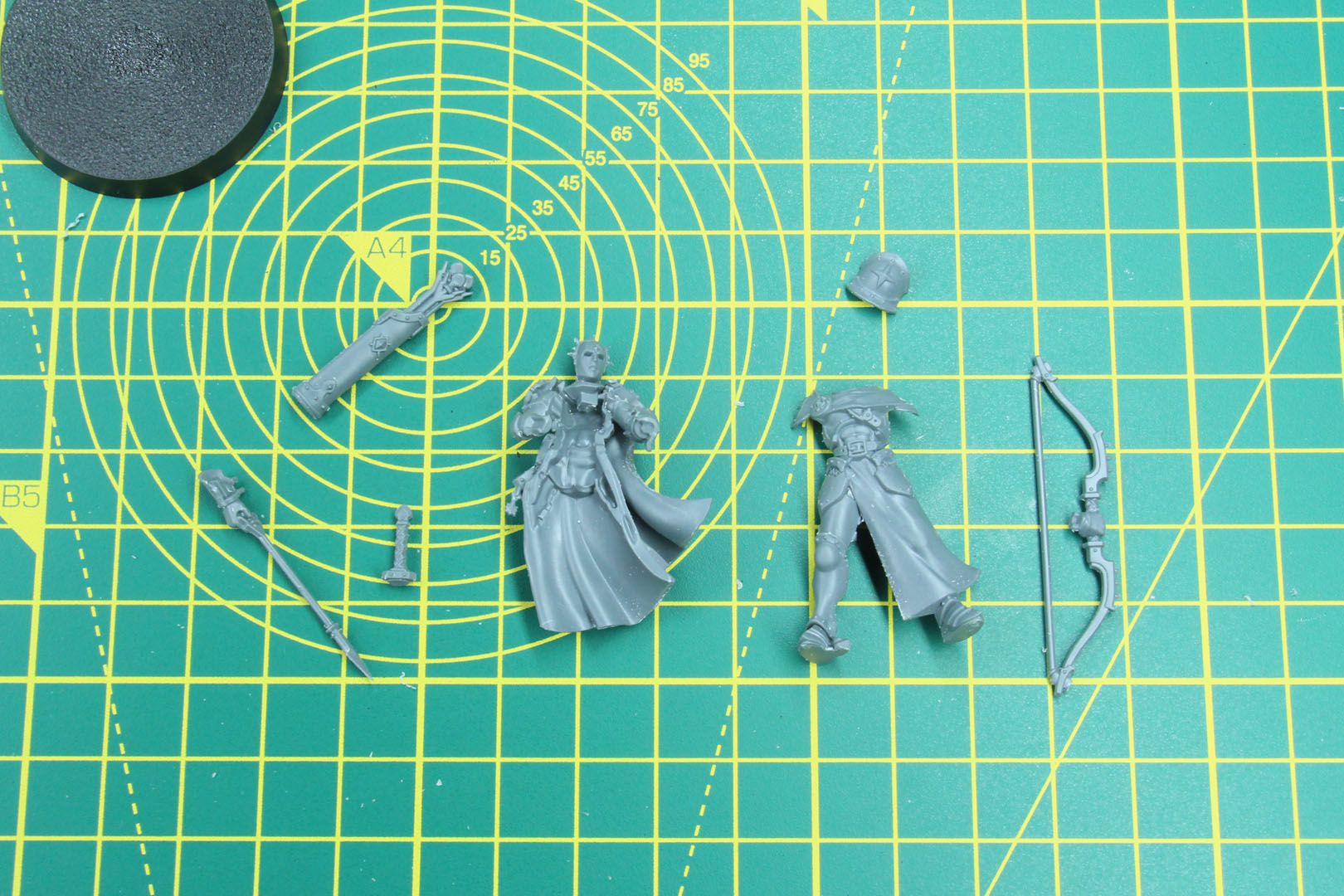 Pose 4 features another female Vigilior with two different head options. She is either drawing a bow or holding up a scroll.