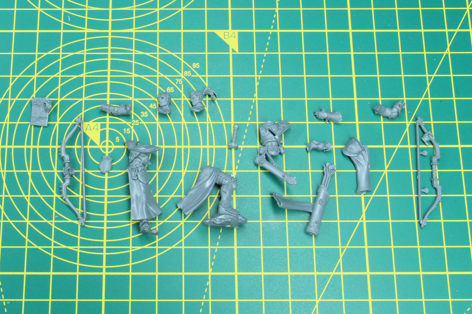 We will start with pose 1, which comes with four different heads: two bare-headed and two helmeted (one of which is for the Alpha). The figure is always armed with a bow and a sword, and you can choose to position them on the left or right. There is also an alternative sculpt of the bow and sword for the Alpha.