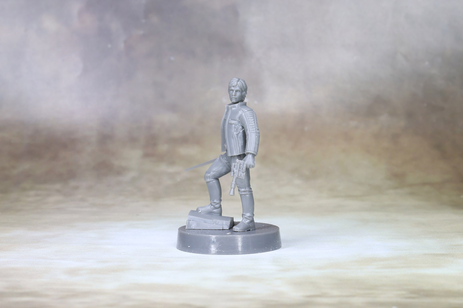 This pose of Luke Skywalker comes with a small decorative piece for the base, and he is depicted either with a clenched fist or holding a pistol in his left hand.