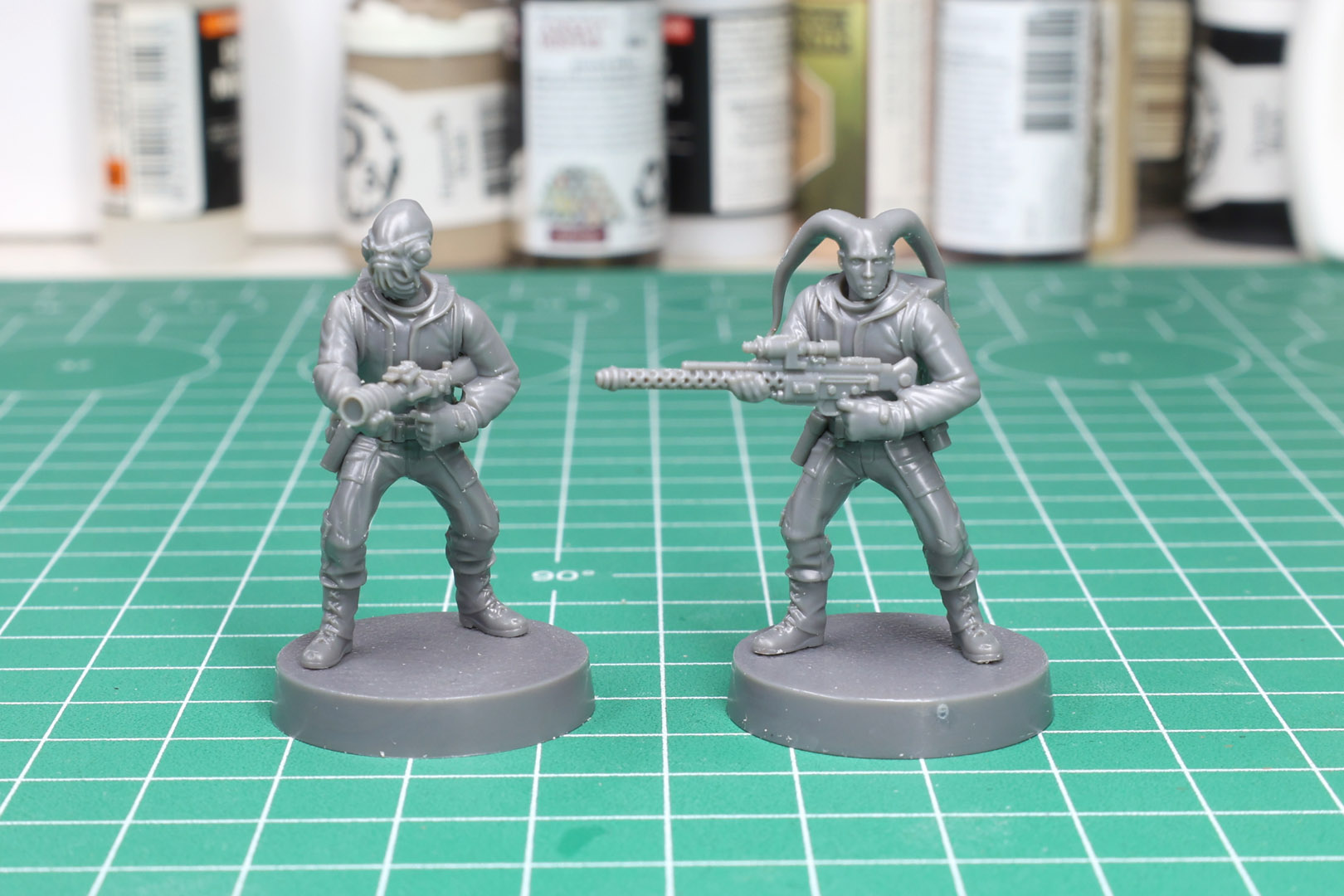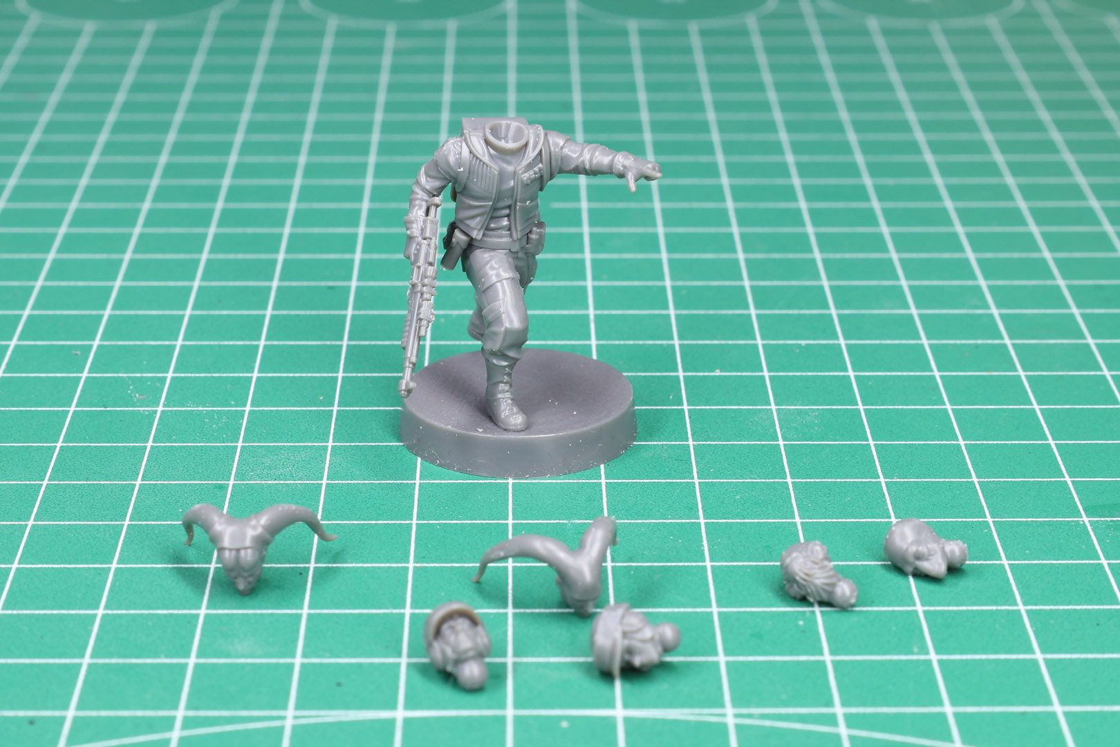 The idea of using a separate head system is great, as it provides a lot of flexibility for this unit and for larger groups of them. While the casting quality and amount of detail are impressive, the faces lack expression. The heads look too much like a CAD drawing and would benefit from more character, such as an aggressive look or a shout. They could just be a bit more involved in the action instead of just looking ahead with closed mouths. However, this is not a major issue as it is easy to replace them with third-party or 3D-printed pieces. This allows you to add even more humanoid species to your rebels, and the neck socket makes kit bashing really simple.