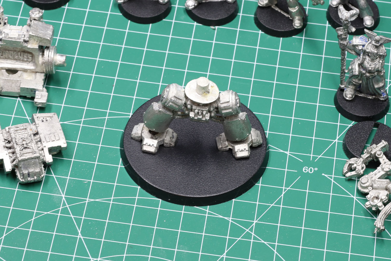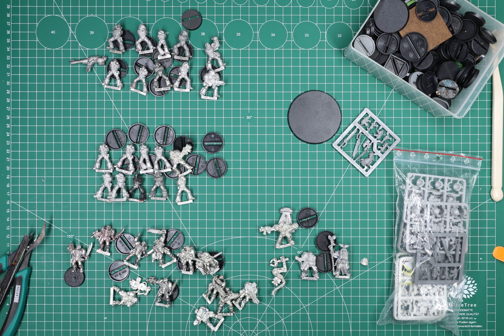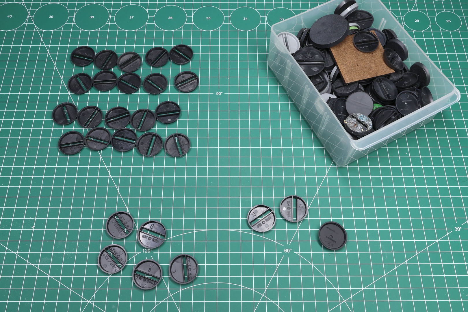 In the grim dark future of the mid 90s, you had round bases and all of them were 25mm with a slot. While there are several producer for these, I wanted to keep it "real" and used original Citadel / Games Workshop bases for this project, as I wanted to have the angles on the bases and everything else coherrent. Just a side note - I'll use different base sizes for this project, this will affect some character and larger miniatures, as you can see for example with the captain or Dreadnought on the fourth picture.