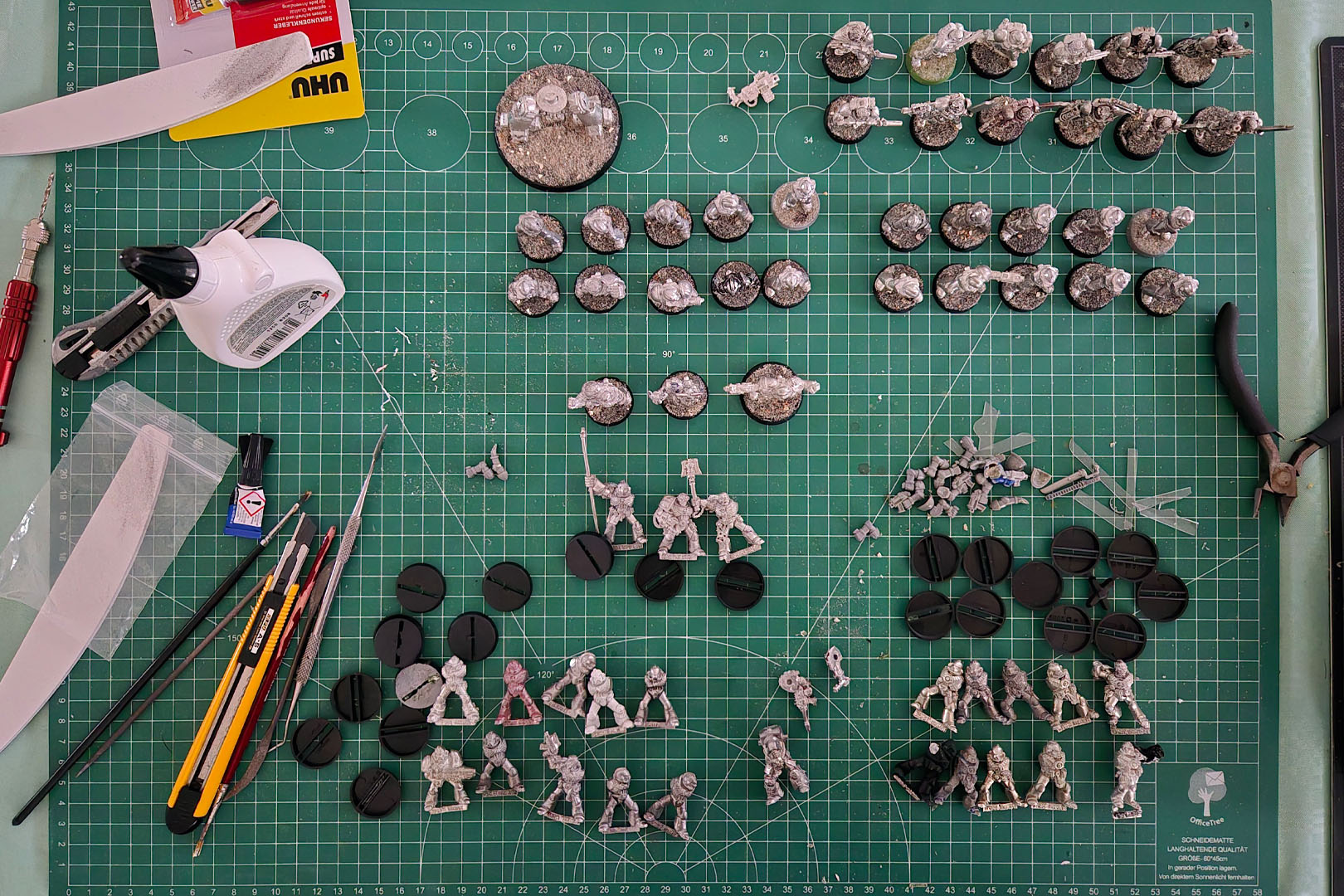 The first step after stripping the paint was clean up of the metal miniatures. Filing mould lines, picking up left over paint from stripping and everything else that could be a problem down the line, when we want to start painting them.