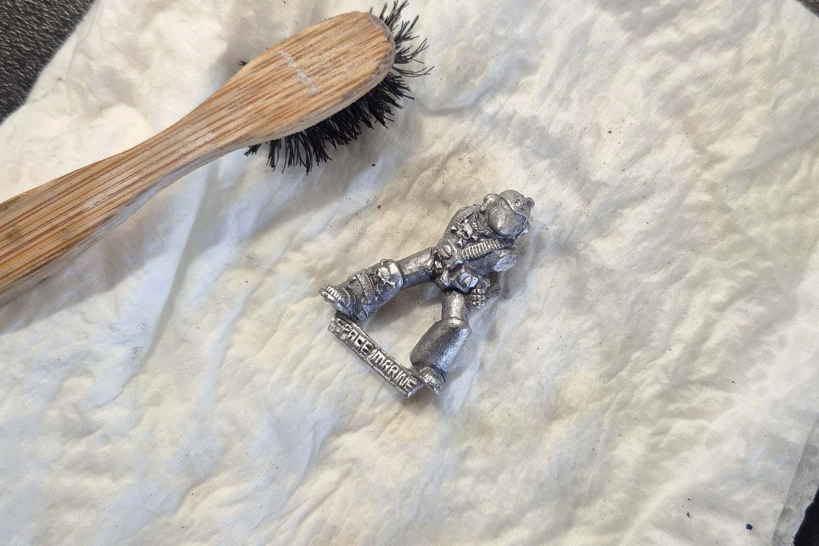 Older miniatures might have taken some damage over time, due to storage, handling and stripping. Therefore this is the perfect time to check if there are some touch ups needed. What am I talking about? Worst case would be lead rot, but that is usually not something we have to worry really about in the post-Rogue Trader era, but I am talking about broken details, flattened noses or scratched surfaces (if somebody went a bit too hard with the brass brush for stripping the paint).